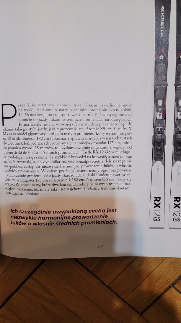 Kastle RX 12 GS 175 cm r 16. Narty w wyśmienitym stanie, tylko 5 dni na śniegu. Mimo GS w nazwie, to narta cross turn. 2500zł